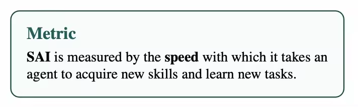 和 AGI 相比,SAI 有几个关键的区别。首先,它不声称自己是「通用」的,避免了逻辑上的自相矛盾。其次,它关注的不是「能不能做」,而是「能多快学会做」,也就是把适应速度作为核心指标。第三,它明确把任务范围扩展到了人类能力之外——那些人类做不了但有实际价值的事情(比如高维统计推断、复杂系统建模)。